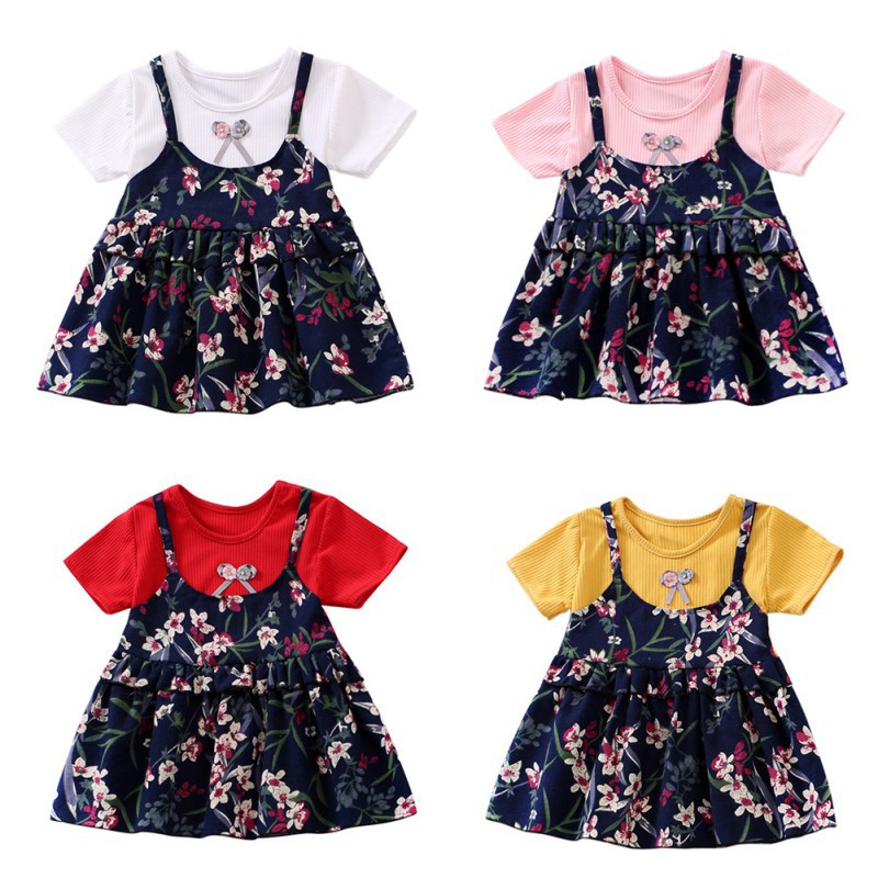 Spring Baby Girl Princess Dress Fake 2 Piece Toddler Floral Pattern Long Sleeve Cotton Dresses Shopee Philippines